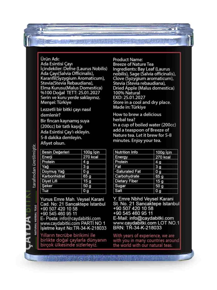 İçindekiler: Ada Çayı, Karanfil, Stevia, Elma